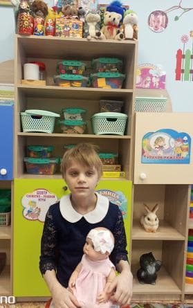Спокойная, улыбчивая, стеснительная девочка. В игре отдает предпочтение спокойными малоподвижным играм. С детьми дружна, помогает младшим. Охотно вступает в контакт